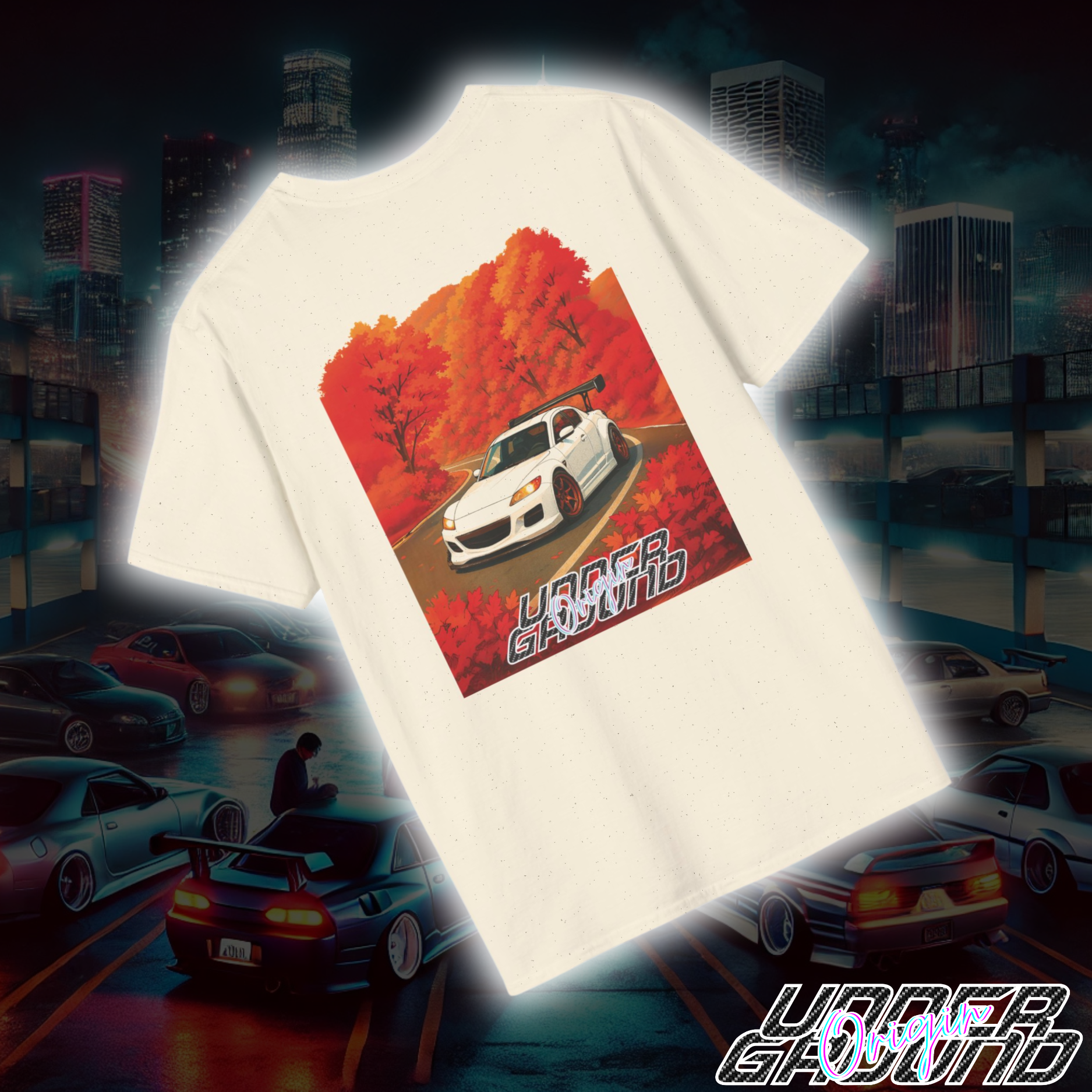 Printed on an oatmeal speckle tee that feels as natural as the forest roads it represents, this shirt delivers clean JDM aggression with cozy seasonal vibes.