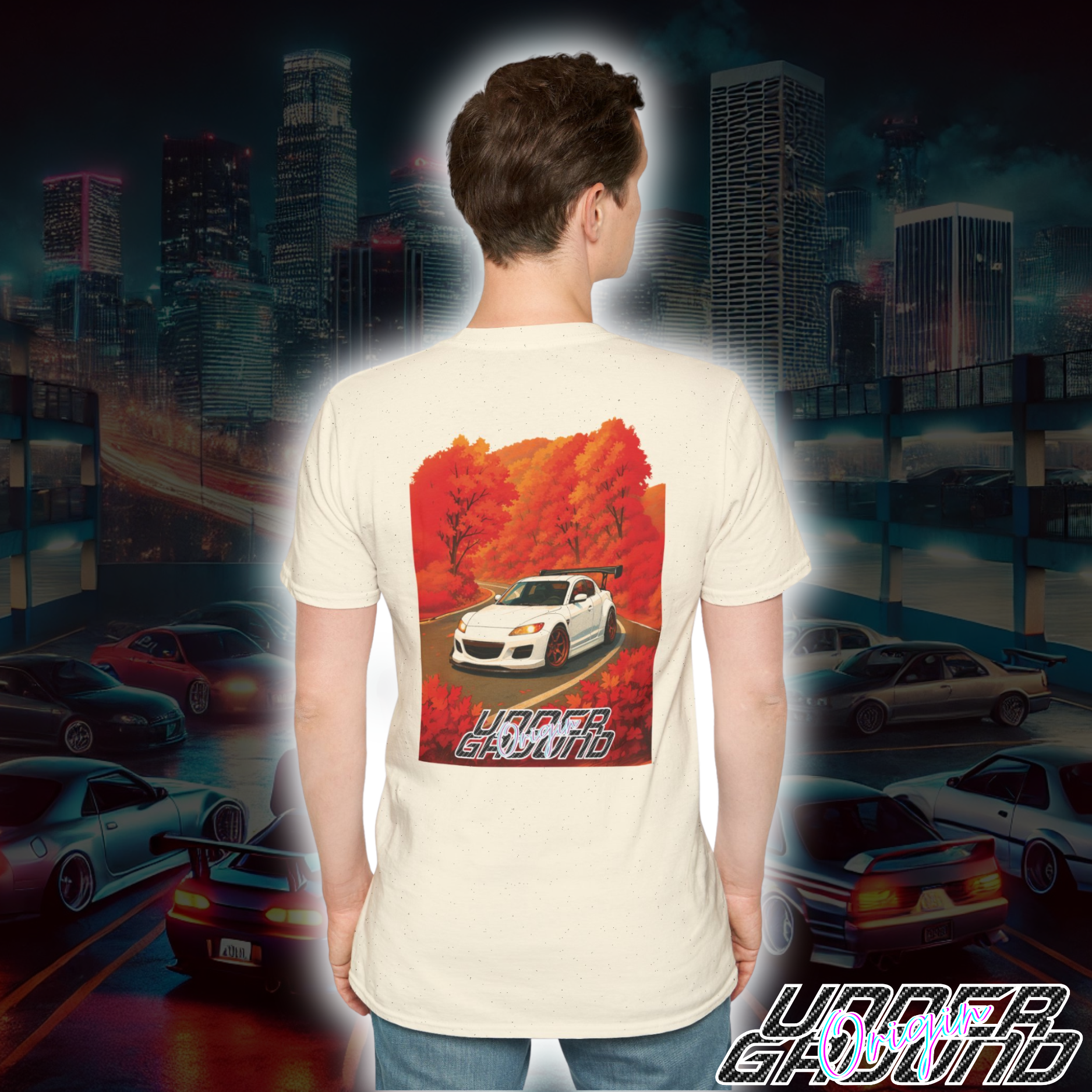 Crimson Apex captures that perfect golden hour moment — a white RX-8 bombing through a sharp curve, flanked by fiery autumn leaves and burnt orange tones. It’s a salute to backroad speed and seasonal color, made for the driver who waits all year for fall to hit peak form.