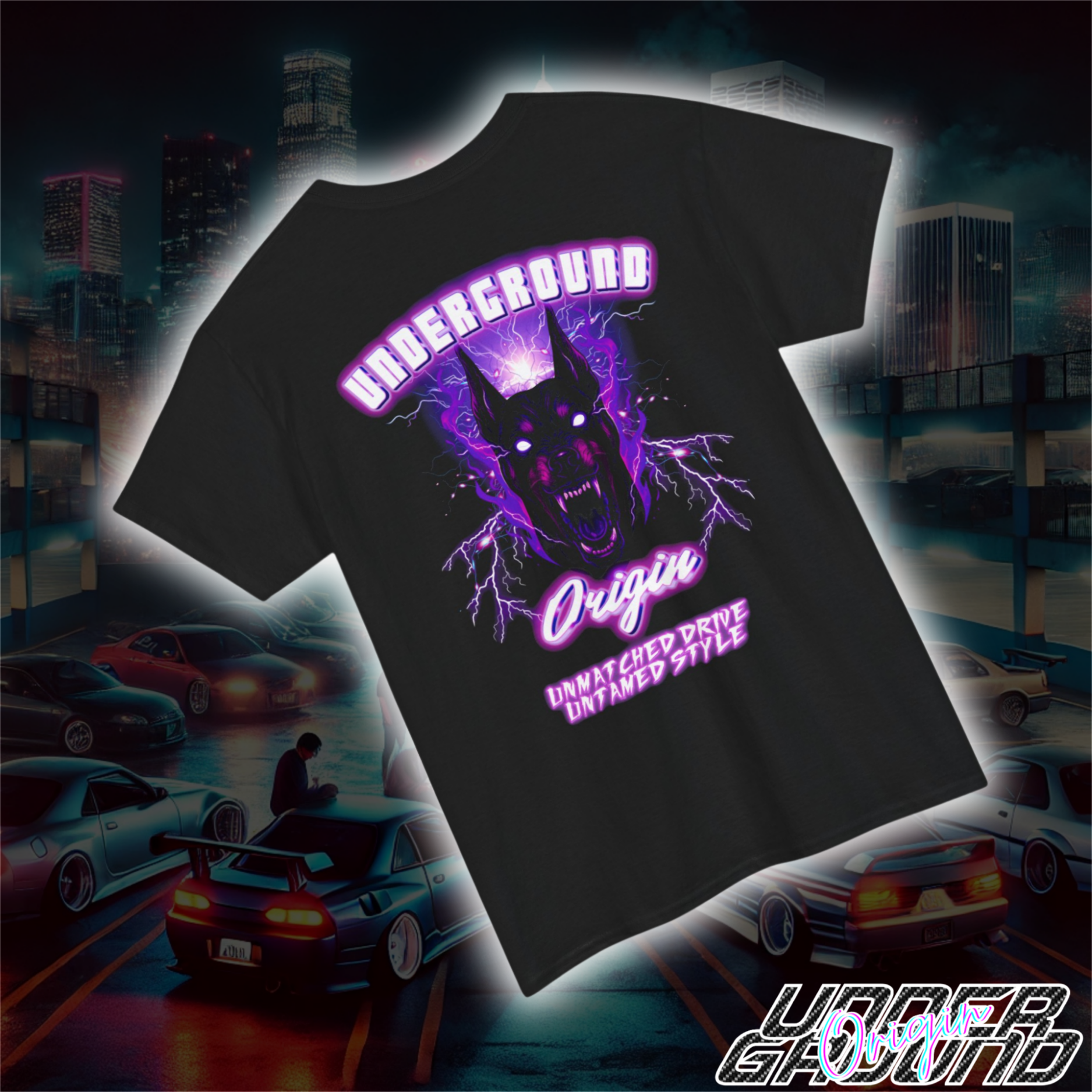 Turn heads and own the streets with the Shadow Voltage Doberman Tee. This design fuses raw aggression with electric energy — featuring a fierce, lightning-charged Doberman that embodies Underground Origin’s creed: Unmatched Drive, Untamed Style. The vivid neon purples and shocking bolt accents make this more than just a shirt — it’s a statement. Perfect for late-night meets, adrenaline runs, and anyone who lives for the underground scene.