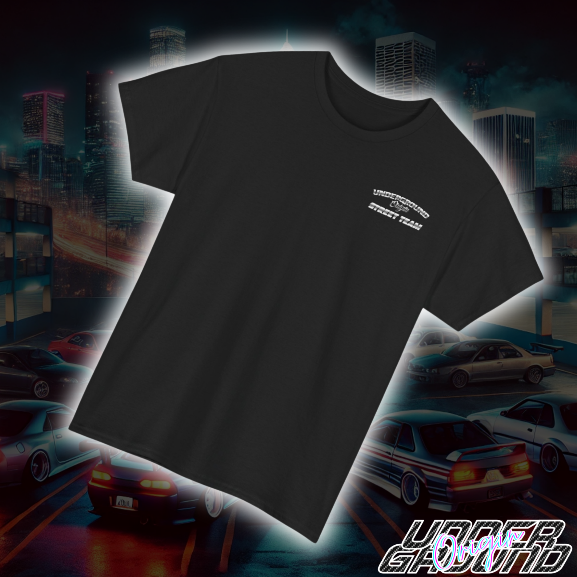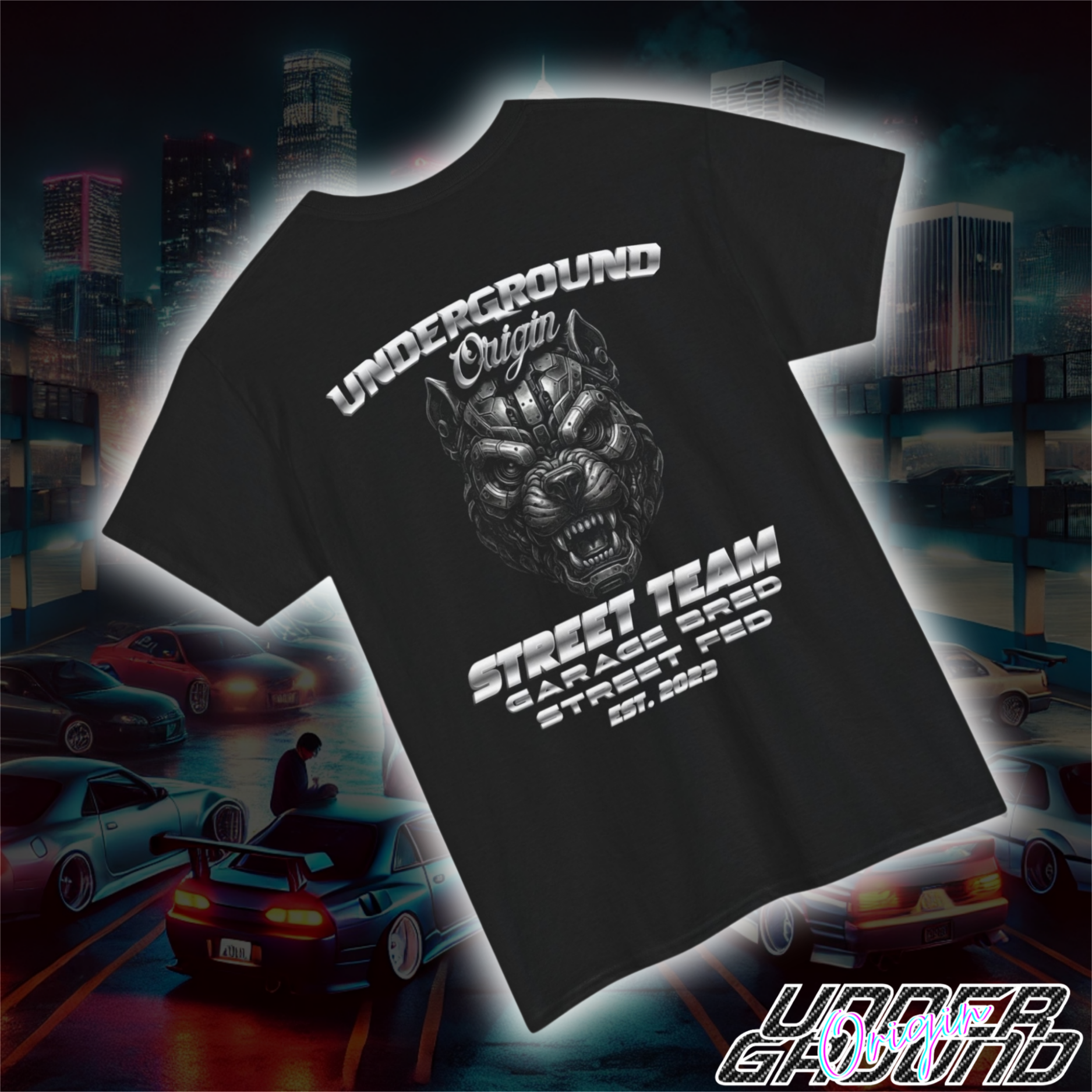 Built in the shadows, unleashed on the streets — the Underground Origin Street Team tee is for the crew that lives and breathes horsepower. Featuring a ferocious mechanical beast front and center, this design screams raw power and precision engineering. With bold metallic lettering and an aggressive monochrome finish, it’s a symbol of respect for those who wrench hard, race harder, and never back down. Whether you’re posted up at the meet or carving through the city, this shirt lets everyone know you’re part of the pack.